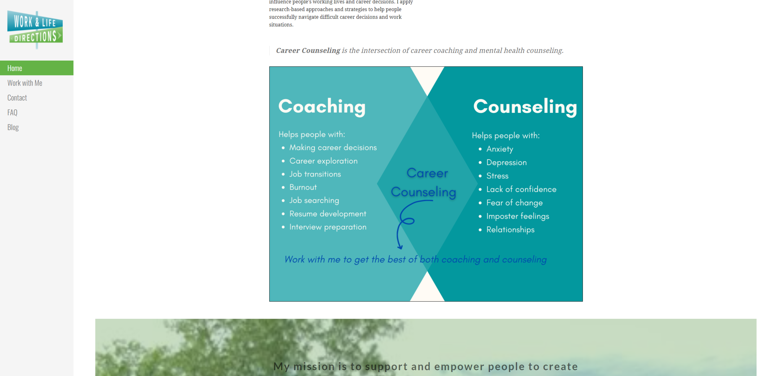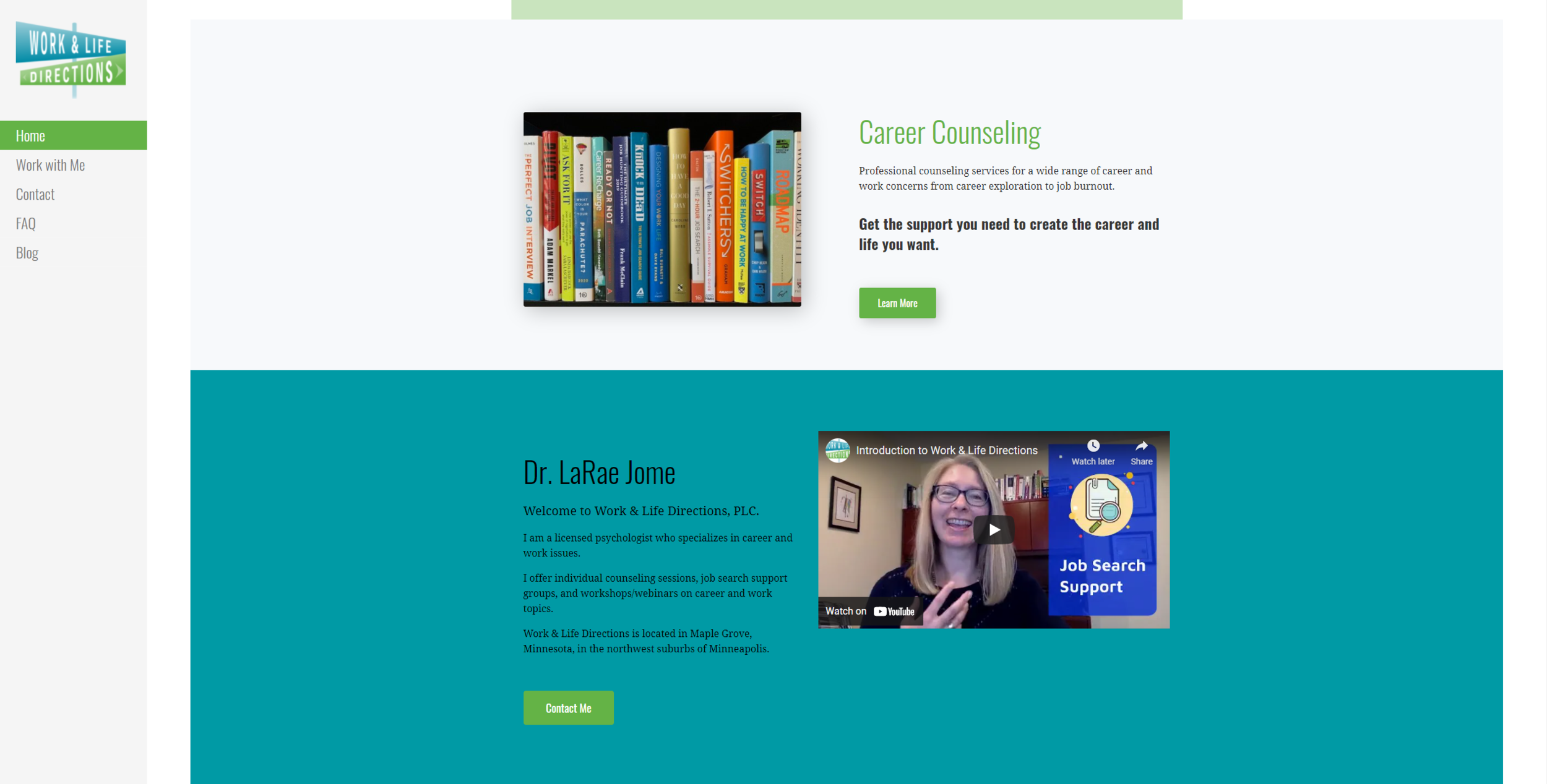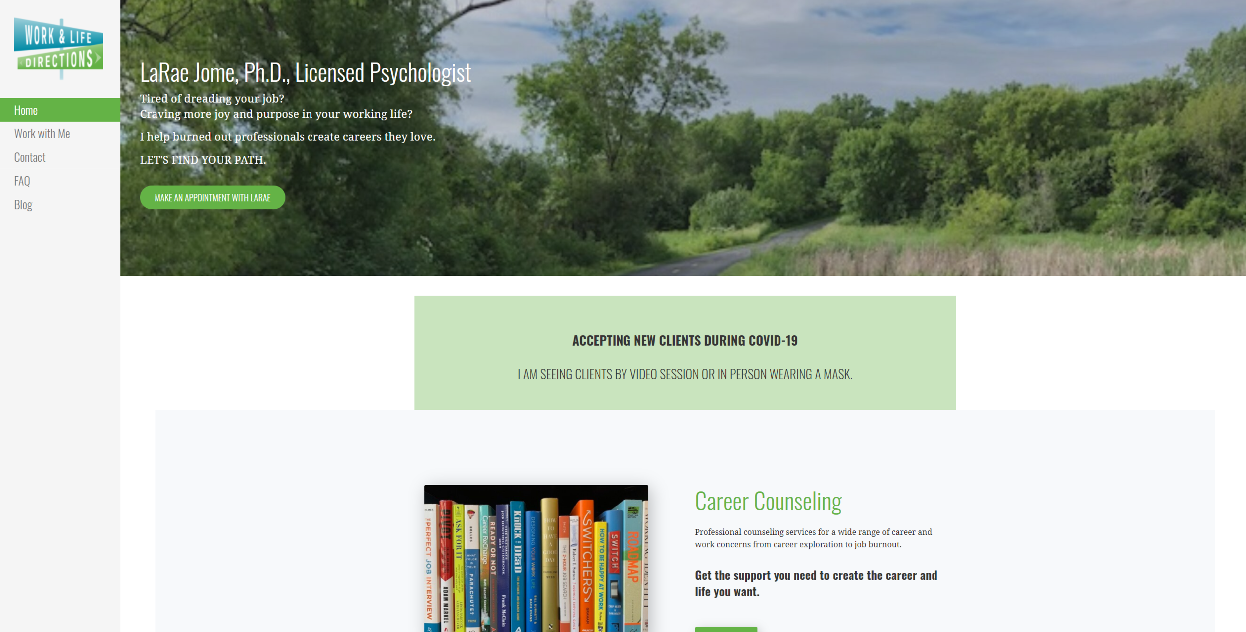 LaRae is a career counselor who helps you navigate all aspects of working life - including mental health. Now she has a brand and website that clearly communicates her unique approach.